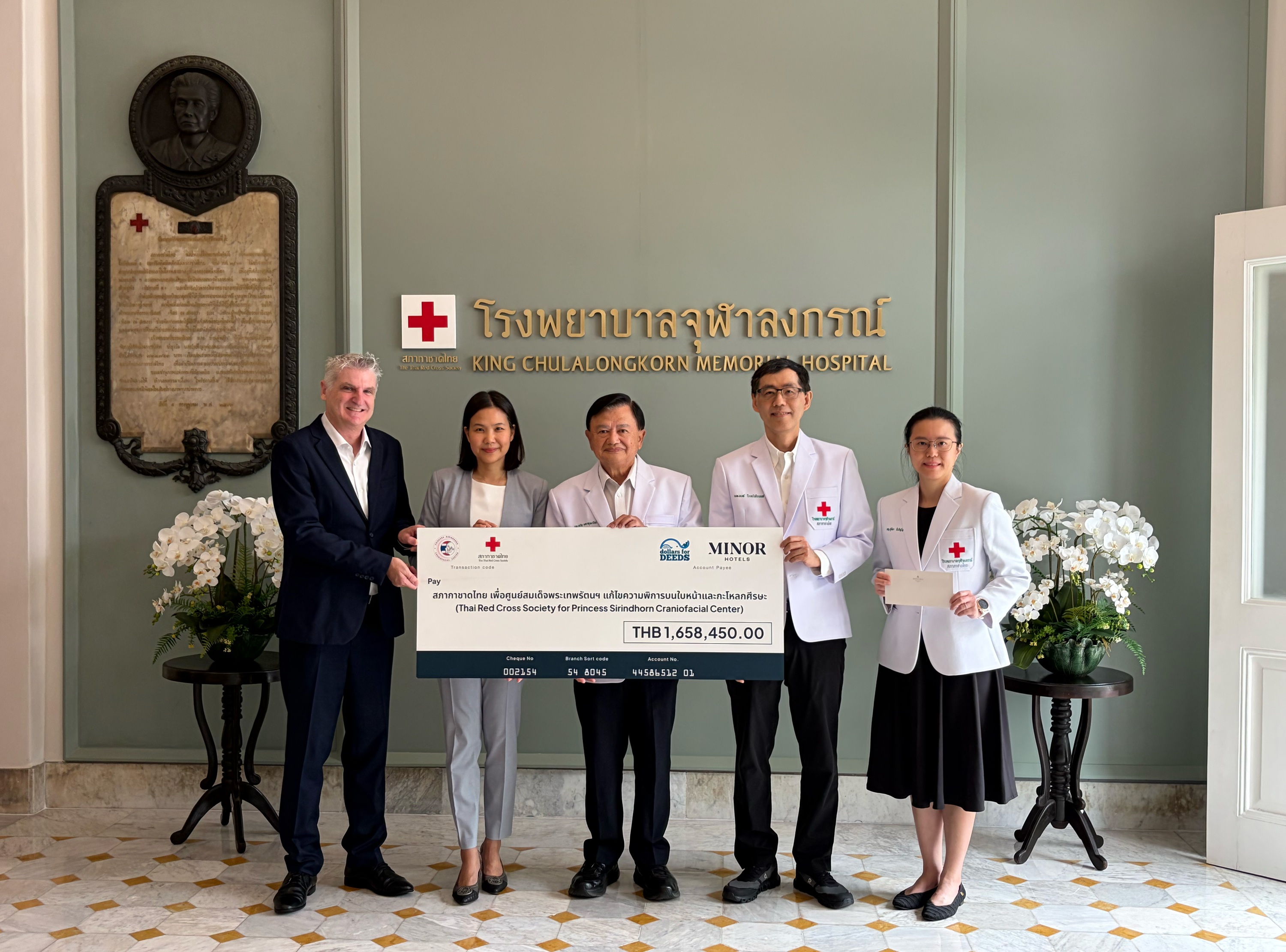 Minor Hotels has donated more than THB 1.6 million to the Princess Sirindhorn Craniofacial Center at King Chulalongkorn Memorial Hospital, reinforcing the company’s long-standing commitment to community wellbeing through its Dollars for Deeds corporate social responsibility programme.