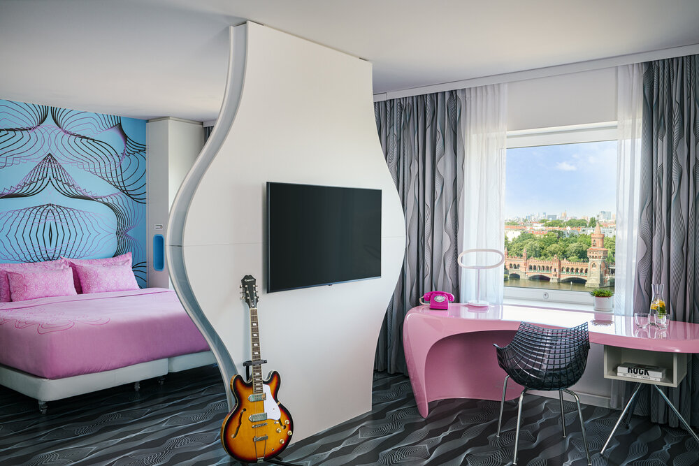 nhow_Berlin_Room_junior_suite_curtains_open_king_size_bed_guitar_tv_view.jpg